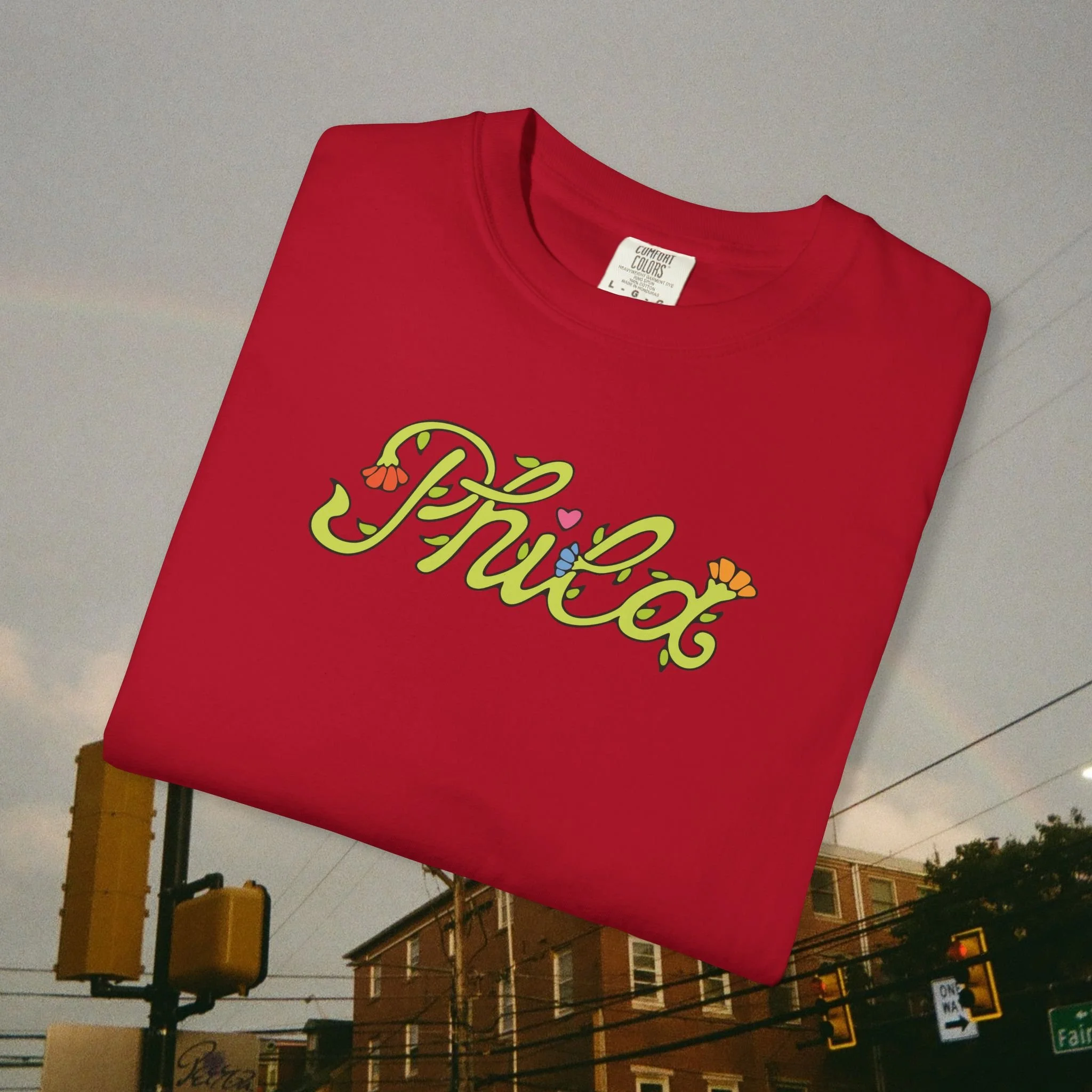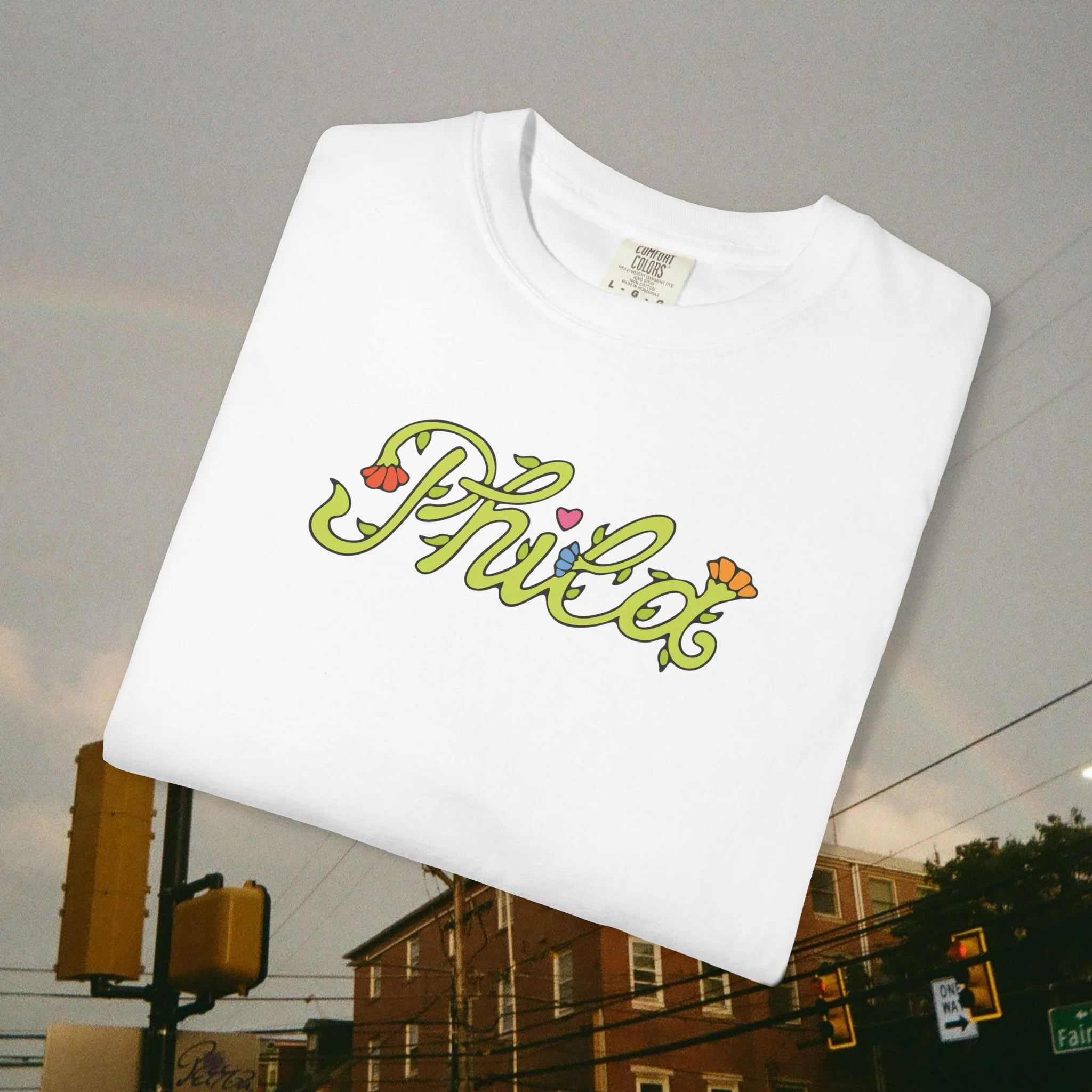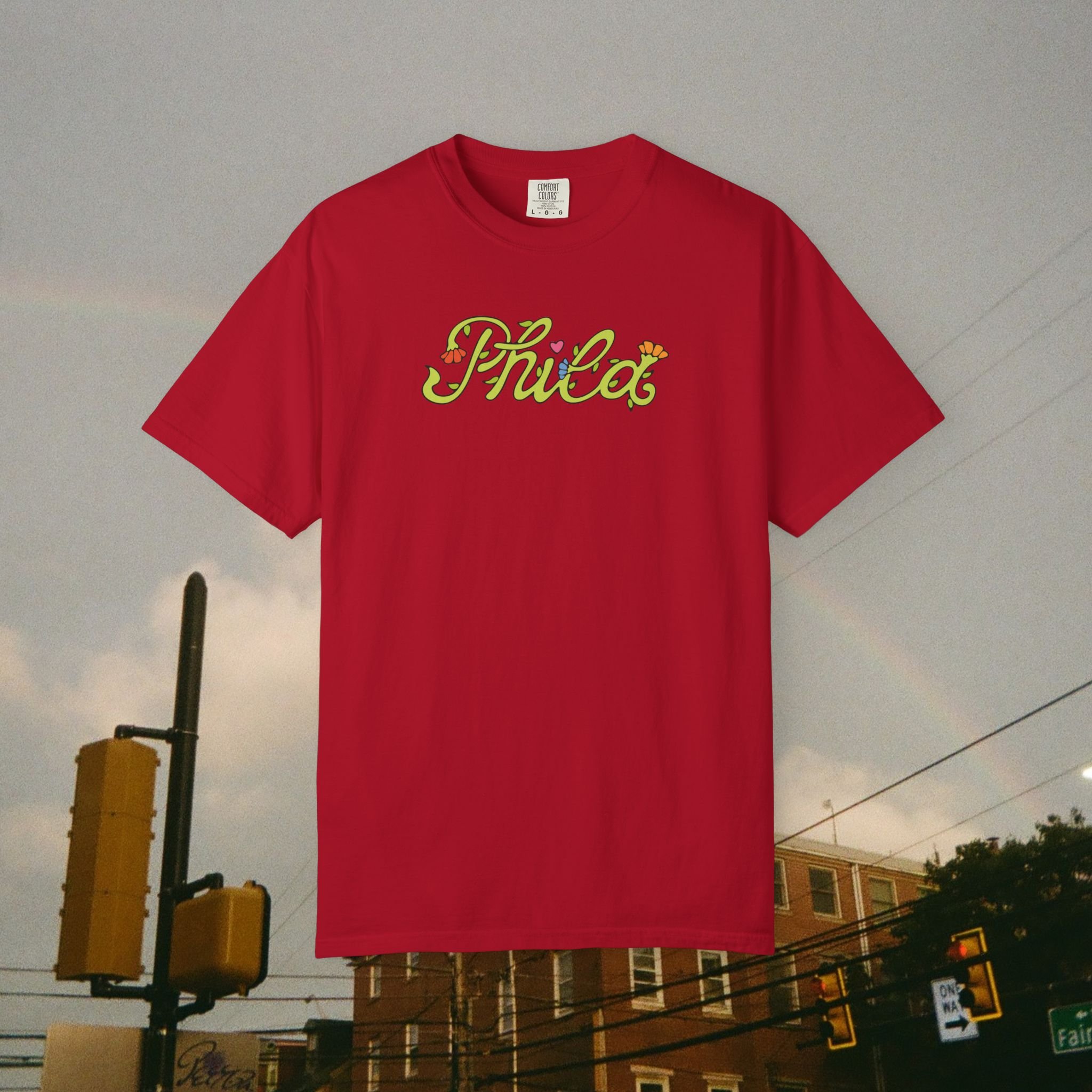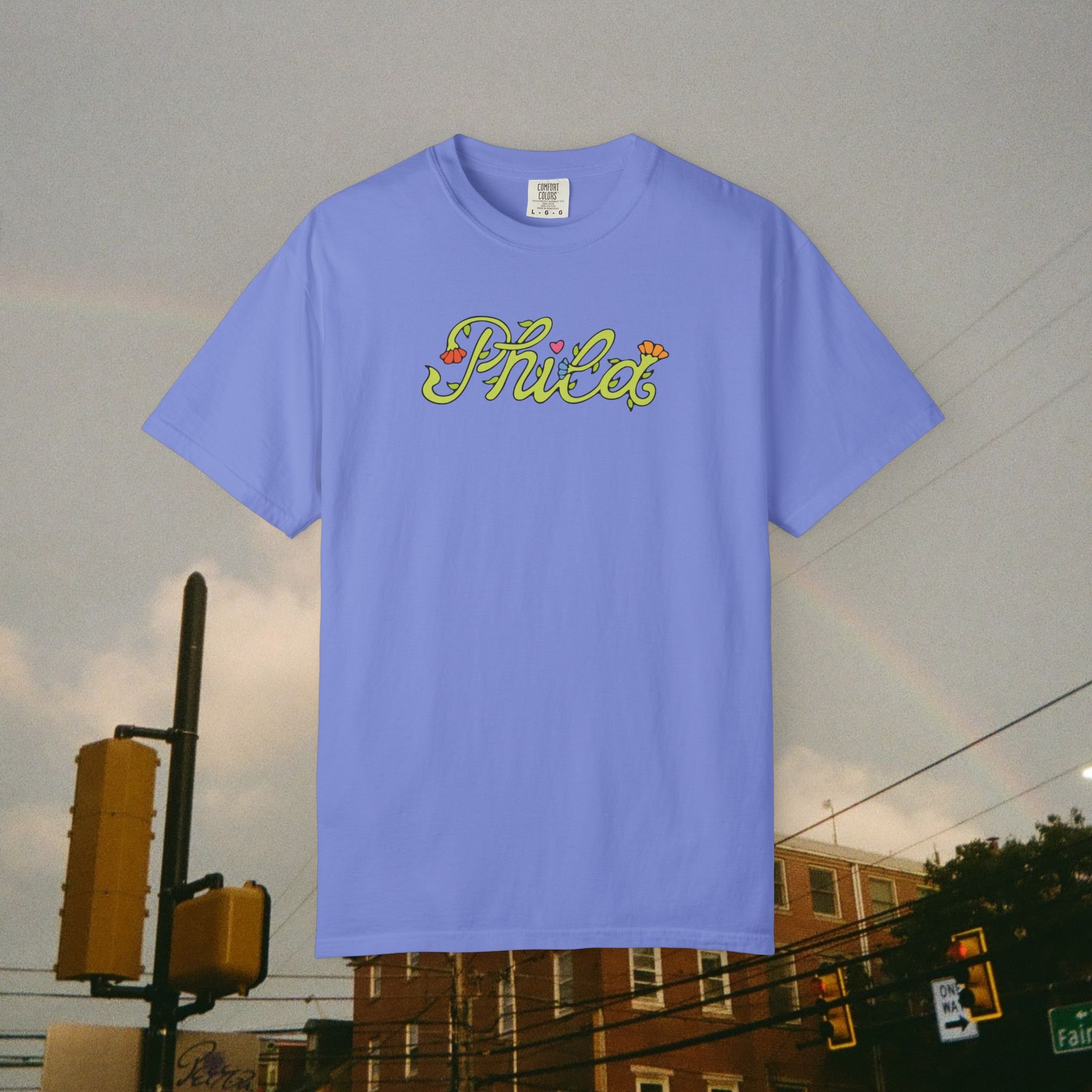 This hoodie features a custom "Phila" floral script font on the front and your favorite Philly icons largely printed on the back, handmade by Lindsay Jeanne herself.